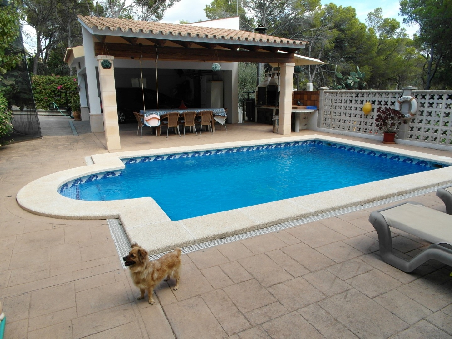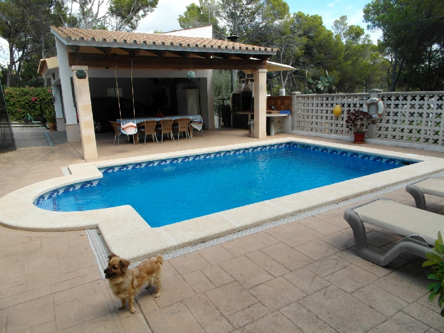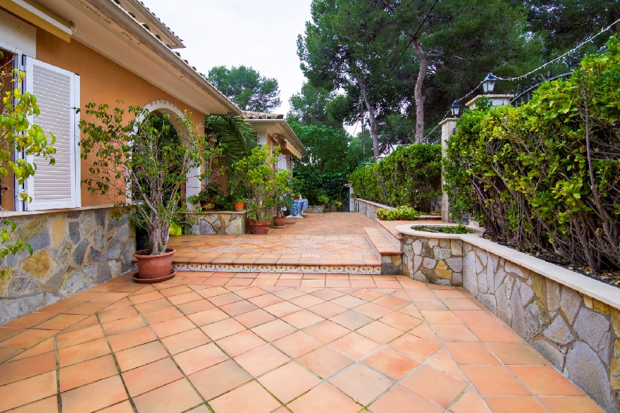 Estupenda y bonita casa construida con muy buenas calidades , situada en una zona residencial y tranquila, lindando con zona verde. Tiene tres plantas, dos de las cuales forman la casa principal con cuatro dormitorios, tres baños(uno en suite) en dos niveles, siendo la parte superior una torre. En la planta principal se encuentra la cocina con acceso a terraza, despensa y un pequeño lavadero. El salón comedor en dos ambientes con chimenea y acceso a un bonito porche. Hay otra sala de estar de menor tamaño. La planta baja se compone de un apartamento independiente con dos dormitorios, baño, cocina comedor con pequeña sala de estar y chimenea, otra zona de estar en la entrada. Taller y lavadero. La casa tiene calefacción con gas ciudad y aire acondicionado. El parking cubierto, linda con un porche/ barbacoa, justo delante se encuentra una piscina de veinticuatro metros cuadrados. Alrededor hay un bonito jardín y pequeño huerto con plantas de diferentes clases. El chalet está situado cerca del mar y del mirador de las islas malgrats en santa ponsa.