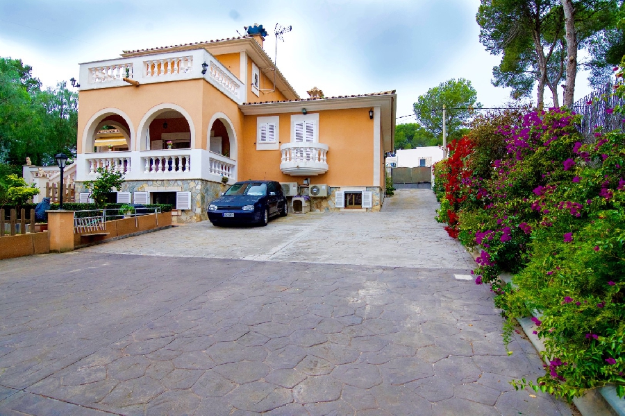 | Wonderful and beautiful villa located in Santa Ponsa, near the sea and the viewpoint of the Malgrats Islands. It is a detached house, built with the best qualities, located in a residential and quiet area, with direct access to green area. It has three floors, two of which form the main house with 4 bedrooms, three bathrooms (one en suite) on two levels, the upper part being a tower. On the main floor there is the kitchen with access to terrace, pantry and a small laundry room. The living room in two ambiances with fireplace and access to a nice porch. Another living room of smaller size. The ground floor consists of a separate apartment with 2 bedrooms, bathroom, kitchen with living room and fireplace, another sitting area at the entrance. Workshop and laundry. The house has central heating and air conditioning. The covered parking, adjoins a barbecue porch, just in front there is a 24m2 pool. There is a nice Mediterranean-style garden surrounding the house and at the back there is a small vegetable garden with varied trees. | |||||||||||||||