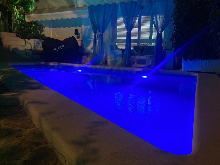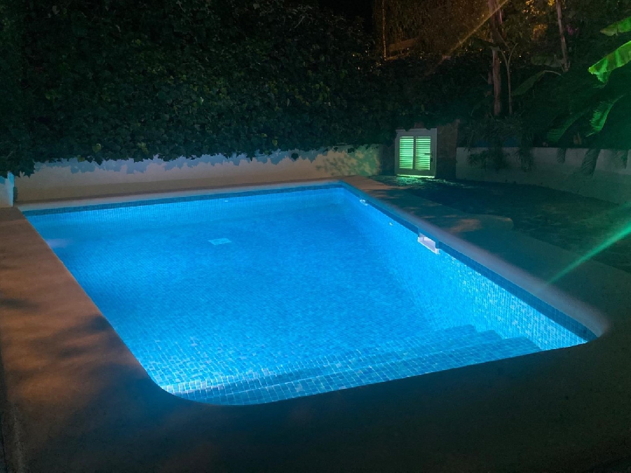 This ground floor is located in the residential area of san agustín, at only few minutes of the commercial area and the cala nova marina and beach. It is well connected to the motorway and to the centre by various bus lines. It is situated in a small building built in year 2. 000. It is very light. Facing east-west. It consists of living/ dining area with direct access onto the pool area- with salted water - and terraces. It has a master bedroom with en suite bathroom, with jacuzi, and two more double bedrooms plus another bathroom. The equipped kitchen leads directy onto a nice patio and laundry area. It has a spacious storage room in the basement and a parking space beside the entrance of the flat. Other features: 4 air con h/c units "carrier", electric shade, marble floors. Electric boiler (300 litres with automatic recirculation system )