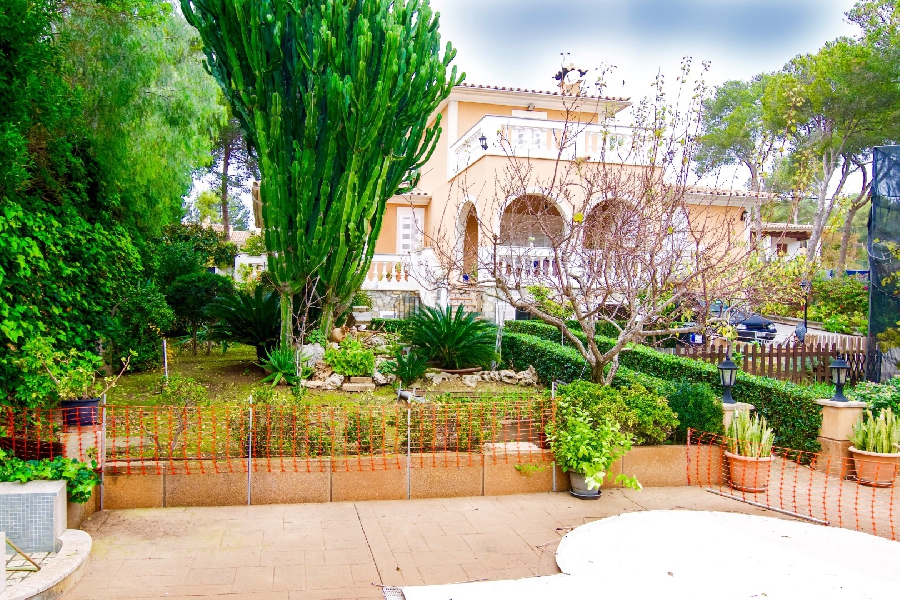 | Wonderful and beautiful villa located in Santa Ponsa, near the sea and the viewpoint of the Malgrats Islands. It is a detached house, built with the best qualities, located in a residential and quiet area, with direct access to green area. It has three floors, two of which form the main house with 4 bedrooms, three bathrooms (one en suite) on two levels, the upper part being a tower. On the main floor there is the kitchen with access to terrace, pantry and a small laundry room. The living room in two ambiances with fireplace and access to a nice porch. Another living room of smaller size. The ground floor consists of a separate apartment with 2 bedrooms, bathroom, kitchen with living room and fireplace, another sitting area at the entrance. Workshop and laundry. The house has central heating and air conditioning. The covered parking, adjoins a barbecue porch, just in front there is a 24m2 pool. There is a nice Mediterranean-style garden surrounding the house and at the back there is a small vegetable garden with varied trees. | |||||||||||||||